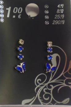 Bei diesem Ohrstecker-Set „Schmetterling“ von KiK wurden bei Analysen stark erhöhte Nickelwerte festgestellt. Aus Gründen des vorbeugenden Gesundheitsschutzes nimmt das Unternehmen die Beanstandung des Artikels ernst und bittet alle Kundinnen und Kunden, Ohrsteckersets, die bereits gekauft wurden, in jeder beliebigen KiK-Filiale zurückzugeben.