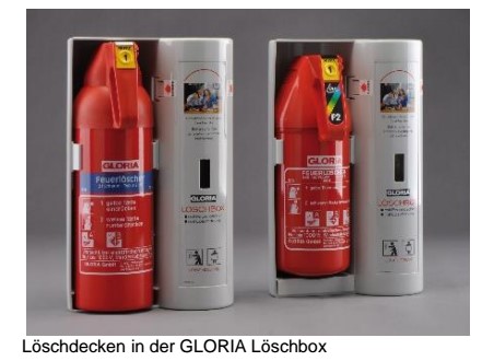 | Produkt: | PROTEX Löschdecke P100 (Maß: 1x1m) PROTEX Löschdecke K75 (Maß: 1x1m) G120 in der Hardbox G120 (Maß: 1,2×1,2m) Löschdecken in der GLORIA Löschbox (Maß: 1x1m) GLORIA Löschdecke LD1 (Maß: 1,6×1,8m) |
