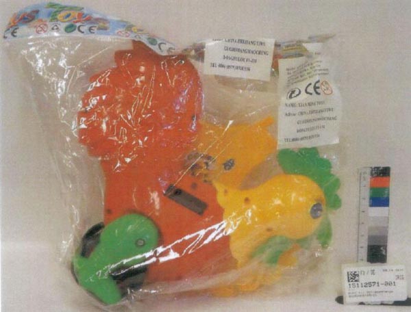 Das europäische Schnellwarnsystem RAPEX informiert in Wochenmeldung 45 über Erstickungsgefahr durch verschluckbare Kleinteile bei untenstehendem Schiebe-Spielzeug.