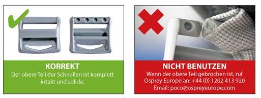 Wenn Du ein Poco AG Produkt besitzt, STOP DIE NUTZUNG DES PRODUKTES SOFORT und überprüfe es gemäß der Anweisungen auf www.ospreyeurope.com