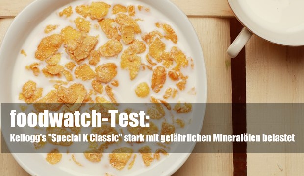 „Kellogg’s Special K Classic“ sind stark mit gesättigten Mineralölen belastet. Das ist das Ergebnis eines Labortests der Verbraucherorganisation foodwatch. Demnach enthalten ein Kilogramm Frühstückflocken ganze 19 Milligramm der gefährlichen Mineralöle.