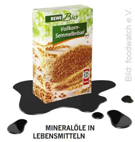 Lebensmittel der Rewe-Eigenmarken sind stark mit gesundheitsgefährdenden Mineralölen belastet. Das ist das Ergebnis eines neuen Labortests der Verbraucherorganisation foodwatch. Demnach sind drei von sechs getesteten Rewe-Produkten betroffen: „Rewe Bio Vollkornsemmelbrösel“ enthalten aromatische Mineralöle (MOAH), die krebserregend und erbgutverändernd sein können. In den Produkten „ja! Langkorn-Spitzenreis“ und „Rewe Bio Dinkelflakes“ konnte die Verbraucherorganisation stark erhöhte Werte gesättigter Mineralöle (MOSH) nachweisen. MOSH können sich im menschlichen Körper anreichern und die Organe schädigen. Öko-Test hatte kürzlich in einem Veggie-Schnitzel der Rewe-Gruppe erhöhte MOSH-Werte gemessen, woraufhin Rewe einen Verkaufsstopp veranlasste.