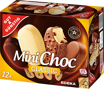 Aus Gründen des vorbeugenden Verbraucherschutzes ruft die DMK Eis GmbH das Produkt „Mini Choc Classic, 12 Stück“ (600 ml-Packung) mit der Bezeichnung „GUT&GÜNSTIG“ zurück.