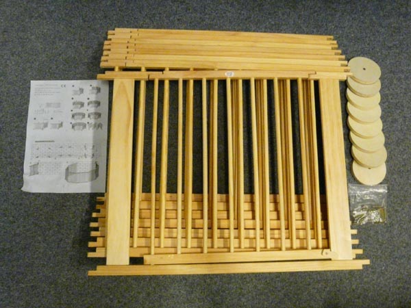 | Beschreibung: | Kinder Holzlaufstall, 8-teilig mit Tür. Kartonverpackung |