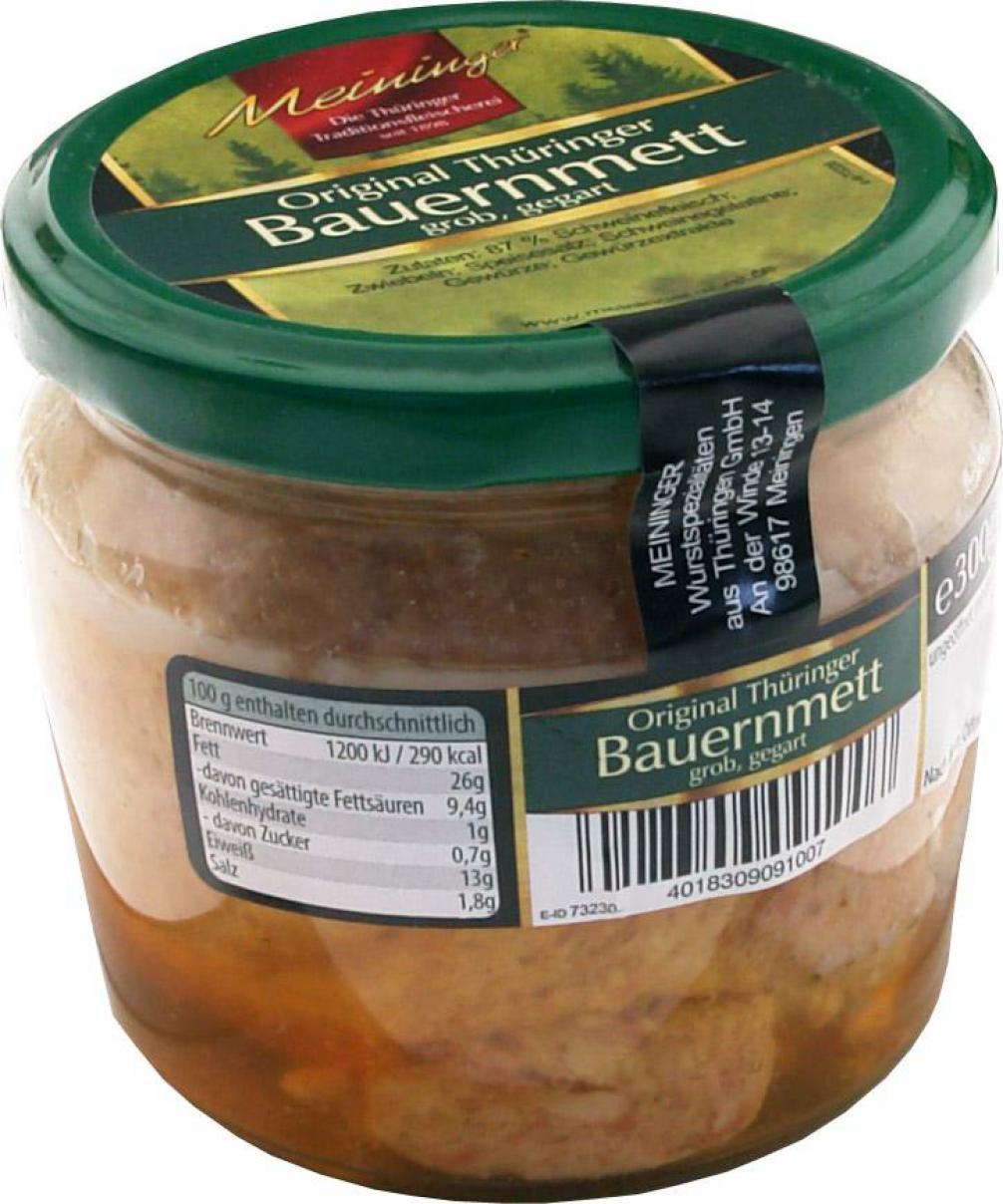 Die Meininger Wurstspezialitäten aus Thüringen GmbH ruft „Original Thüringer Bauernmett“ in Glasvollkonserve zurück. Wie das Unternehmen mitteilt, wurde in einem Glas „Original Thüringer Bauernmett“ wurde ein Glassplitter gefunden. Der genannte Artikel (siehe genanntes MHD in Verbindung mit genannter Chargen-Nr.) sollte daher vorsorglich nicht mehr verzehrt werden.
