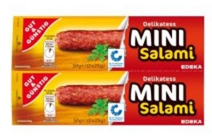 Aus Gründen des vorbeugenden Verbraucherschutzes ruft die EDEKA-Zentrale den Artikel „GUT&GÜNSTIG Delikatess Mini Salami“ in der Doppelpackung 2 x 25g, produziert von der zur Mühlen Gruppe Markenvertriebs GmbH, zurück. Betroffen ist eine Produktionscharge dieses Artikels mit dem Mindeshaltbarkeitsdatum 27.10.16. Das Produkt wurde bundesweit vorwiegend in Marktkauf- und EDEKA-Märkten verkauft.