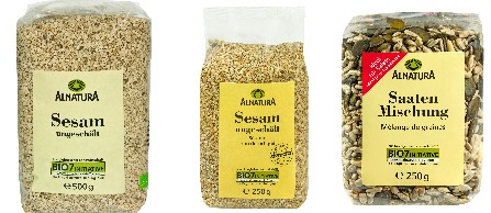 Alnatura ruft drei Alnatura Sesam 500 Gramm, Alnatura Sesam ungeschält 250 Gramm, Alnatura Saatenmischung 250 Gramm zurück, nachdem in einer Probe Salmonellen nachgewiesen wurden.