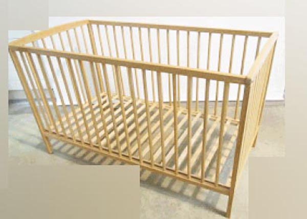 Die Stäbe des Bettes können sich lösen und ein Kind könnte durch die entstehende Lücke fallen. Zusätzlich sind die Lücken zwischen den Stäben zu groß. Außerdem besteht Einklemmgefahr für Kleinkinder. Das Produkt entspricht nicht der europäischen Norm EN 716.