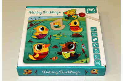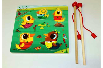 Das aus einer Holzplatte mit fünf herausnehmbaren Holzteilen in Form verschiedener Enten (Puzzle) und zwei Angeln bestehende Kinderspielzeug kann durch verschluckbare Kleinteile zu schweren inneren Verletzungen führen. Die Tierfiguren enthalten Metalleinsätze, die beiden Angeln jeweils einen Magneten. Es besteht die Gefahr von Verletzungen, weil die Magnete kleine Teile sind, die von Kindern, insbesondere Kleinkindern verschluckt werden können; zudem ist der magnetische Flussindex zu hoch: Das bedeutet, dass sich verschluckte Magnetteile im Darmbereich zusammenhängen können und der Darm dadurch sogar verschlossen oder die Darmwand erheblich verletzt werden könnte.