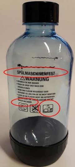 SodaStream ruft in mehreren europäischen Ländern blaue, geschirrspülfeste Sprudelflaschen von SodaStream mit dem Mindesthaltbarkeitsdatum 04/2020 („MHD 04/2020“) zurück
