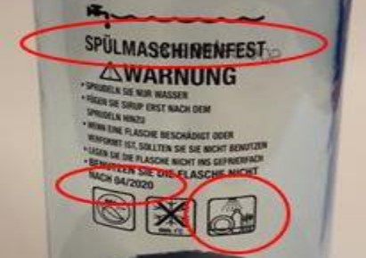 – an der Aufschrift „Spülmaschinenfest“ sowie dem Symbol für Spülmaschinenfestigkeit UND