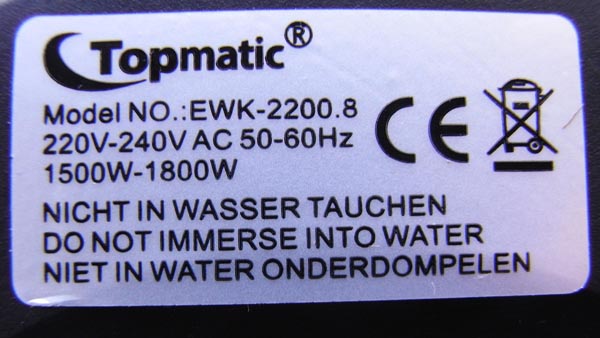 Rapex-Meldung: Stromschlaggefahr bei Edelstahl Wasserkocher der Marke Topmatic