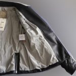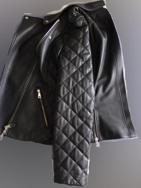| Beschreibung: | Schwarze Lederjacke, gefüttert, Ärmel mit schwarzen Sattelstichen, silberne Reißverschlüsse und Druckknöpfe, glänzendes, hellgraues Gewebefutter; Probenahme (gemäß Etikett): 38 |