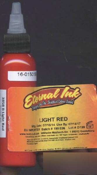 Das europäische Schnellwarnsystem RAPEX informiert über Nickelbelastung in untenstehender Tätowierfarbe von „Eternal Ink“. In dieser Tätowierfarbe „Light Red“ der Marke „Eternal Ink“ finden sich stark erhöhte Konzentrationen von Nickel. Dadurch, dass bei einer Tätowierung der Farbstoff direkten Kontakt zur Haut hat, ist das Allergene Potential sehr hoch.