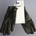 Beschreibung: Ungefütterte Handschuhe aus schwarzem, teils perforiertem Leder mit Klettverschluss und gewebtem ‚Schwenkel‘-Logo, Knopf mit Pferdekopfmotiv, elastischen,‘ uvex ‚und‘ 7 ‚Etiketten