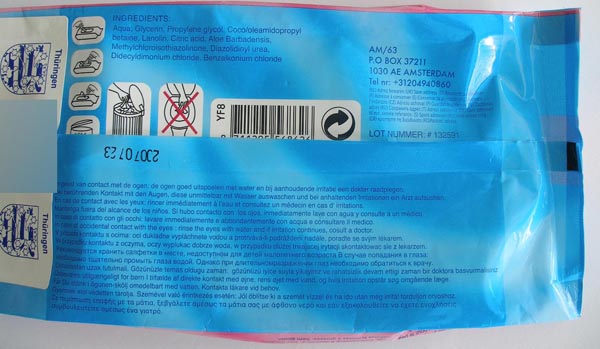 | Beschreibung: | 30 Feuchttücher, Größe etwa 20 x 15 cm, in einer hellblauen Folienverpackung, auf der Vorderseite der Verpackung wiederverschließbar. Schwarz-Weiß-Baby-Foto auf der Vorderseite |
