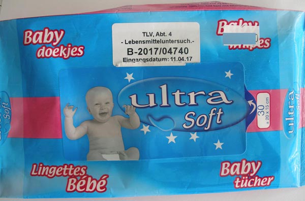 Das europäische Schnellwarnsystem RAPEX informiert über Biozidbelastung in Baby Feuchttüchern „Ultra Soft“ von AM/63. Das eingesetzte Biozid wird als Konservierungsstoff bei Kosmetika eingesetzt. Die betroffenen Baby Feuchttücher tragen auf der Rückseite die Lotnummer und ein aufgedrucktes Datum, bei dem es sich mutmaßlich um das Herstellungsdatum handelt. Demnach wurden die Tücher also bereits 2007 hergestellt. Uns vorliegenden Informationen zufolge, wurden allerdings noch große Mengen am Markt entdeckt. Im Verkauf waren die Tücher u.a. über Sonderpostenmärkte