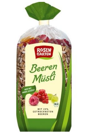 Die Firma Minderleinsmühle GmbH & Co. KG informiert, dass im Produkt Rosengarten Bio Beeren Müsli 750 g mit dem Mindesthaltbarkeitsdatum 28.05.18 vereinzelt ein Schoko-Knusper-Müsli enthalten sein kann. Dieses enthält Vollmilchschokolade mit Vollmilchpulver und Sojalecithin als Zutat.