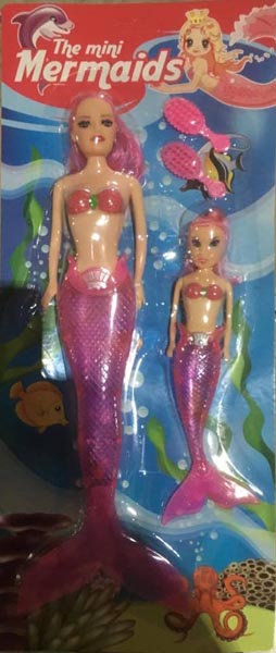 | Beschreibung: | Plastik-Meerjungfrau-Puppen, 1 große und 1 kleine, mit 2 Kämmen je Packung. In einer Blisterpackung mit Pappe verkauft |