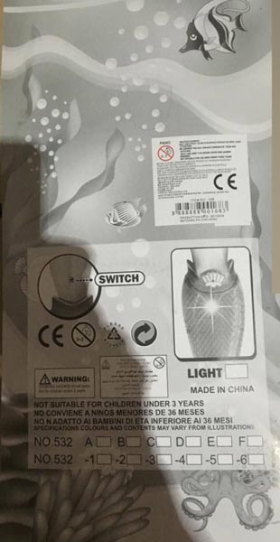 | Produktrisiko: | Das Kunststoffmaterial der Puppe enthält Di- (2-etylhexyl) phthalat (DEHP) (Messwert 28,7 Gew .-%) und Di- (2-butyl) phthalat (DBP) (Messwert 0,25 Gew .-%). Diese Phthalate können die Gesundheit der Kinder schädigen, was zu einer möglichen Schädigung des Fortpflanzungssystems führt. |