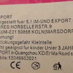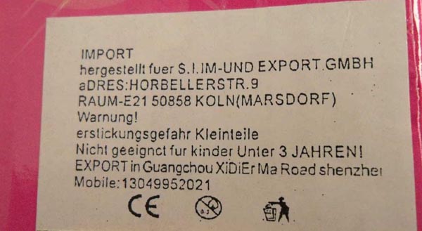 | Weiteres: | Gemäß der REACH-Verordnung sind die Phthalate DEHP, DBP und BBP in allen Spielzeug- und Babyartikeln verboten. Das Produkt entspricht nicht den Anforderungen der Spielzeugrichtlinie und den europäischen Normen EN 62115 und EN 71-1 |