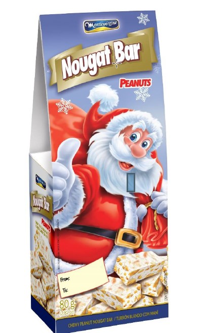 Sicherheitswarnung: Montevergine Nougat-Riegel mit Erdnüssen / Weihnachtsverpackung 80 g