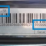 Die Daten finden sich auf dem Etikett in der Nähe des Tretlagers auf der Unterseite des Rahmens. Relevant sind die beiden in diesem Bild (siehe unten) markierten Bereiche.