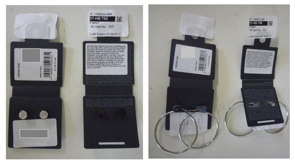Das europäische Schnellwarnsystem RAPEX informiert über erhöhte Nickelwerte in Modeschmuck Ohrringen von Bijou Brigitte.