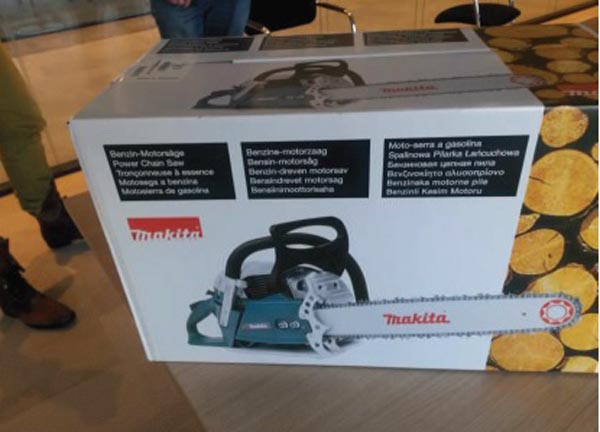 | Beschreibung: | Kettensäge in einer Pappschachtel |