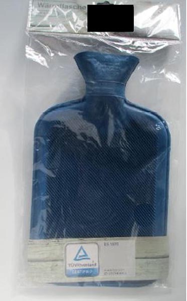 Das europäische Schnellwarnsystem RAPEX informiert über krebserregende polyzyklische aromatische Kohlenwasserstoffe (PAK) Chrysen und Benzo[e]pyren die in blauen Wärmflaschen unbekannter Herkunft gefunden wurden. Wie die Produktabbildung zeigt, tragen diese ein TÜV Logo