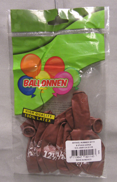 | Rapex Nummer: A12/0987/18 Marke: unbekannt Name: Ballonnen – High Quality Farbe: Kupfer/braun Barcode: EAN 8713647901143 |