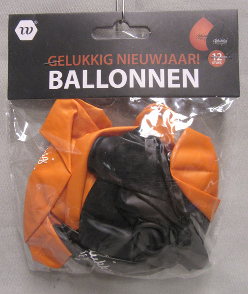 | Rapex Nummer: A12/0988/18 Marke: D&F Name: Gelukkig Nieuwjaar! Ballonnen Farbe: schwarz/orange Barcode: EAN 8717928139249 |