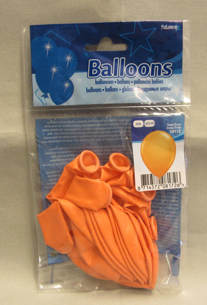 | Beschreibung: | Transparente Plastiktüte mit 10 orangefarbenen Luftballons. |