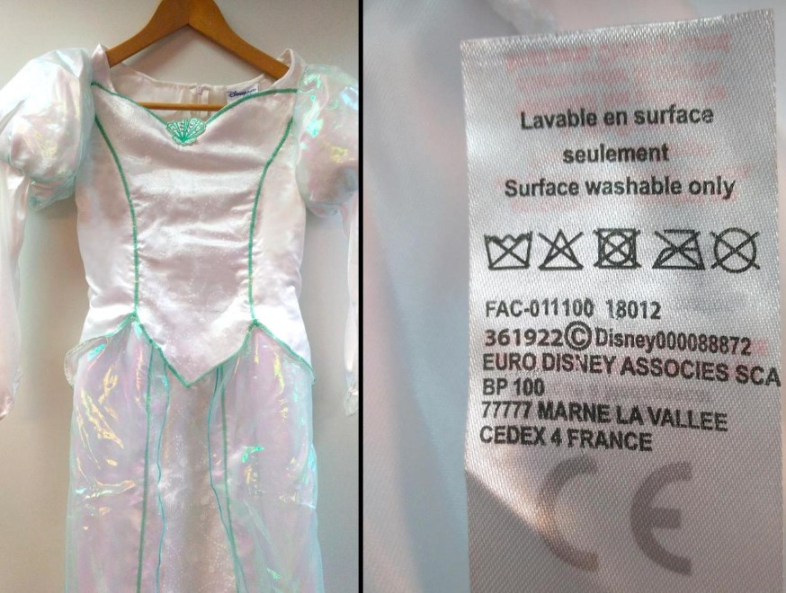 Besucher von Disneyland Paris, die dort ein solches Ariel-Kostüm gekauft haben werden gebeten die Chargen FAC-011100-17237, FAC-011100-17261, FAC-011100-17314 und FAC-011100-18012 nicht mehr zu benutzen und das Produkt zur Rückerstattung an Disneyland Paris zurückzugeben.