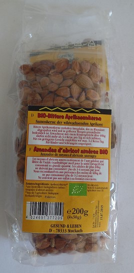 Im Rahmen einer Marktkontrolle haben die deutschen Behörden stark erhöhte Gehalte an Cyanwasserstoff (Blausäure) in den Bio-bittere Aprikosenkernen nachgewiesen. Eine Gesundheitsgefährdung kann beim Konsum dieser Aprikosenkerne nicht ausgeschlossen werden.