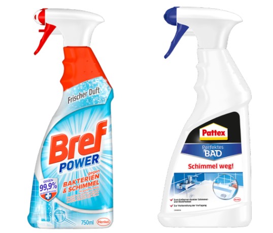 Henkel informiert über den Rückruf von „Bref Power Bakterien & Schimmel“ und „Pattex Schimmel weg!“ Spray. Wie das Unternehmen mitteilt, kann nicht ausgeschlossen werden, dass sich der Sprühkopf von der Flasche löst und dadurch Reinigungsmittel herausspritzt.