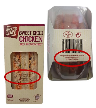 Aldi-Süd informiert über den Rückruf von „Snack Time Sandwich, Sweet Chili Chicken“ mit allen Mindesthaltbarkeitsdaten bis einschließlich 06.01.2019 des Herstellers Fabry´s Food & Snack GmbH & Co. KG. Das betroffene Produkt dieses Lieferanten wurde in Teilen des ALDI SÜD Gebietes vertrieben, die betroffenen Artikel wurden umgehend aus dem Handel genommen.