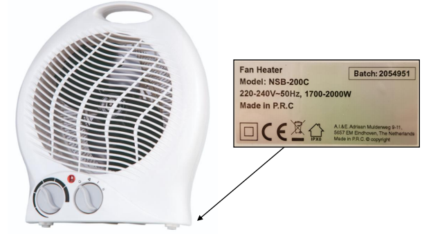 Wer im Zeitraum seit September 2018 einen der unten abgebildeten Heizlüfter der Modellbezeichnung NSB-200C gekuaft hat, sollte diesen unter keinen Umständen mehr einschalten und vom Stromnetz trennen.