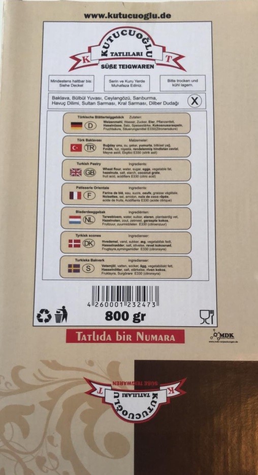 Die Kutucuoglu Backwaren GmbH & Co. KG mit Sitz in Köln ruft Aufgrund der Verarbeitung der Zutat Erdnuss ohne Kennzeichnung dieses Allergens im Zutatenverzeichnis alle folgenden Baklava Produkte zurück.
