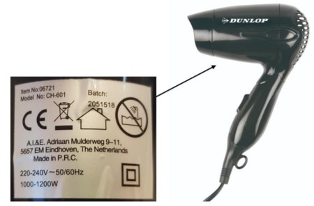 In den Niederlanden wurde das Geräte von März 2019 bis Mitte Mai 2019 bei Wibra und Van Cranenbroek verkauft. Kunden werden gebeten, den Reiseföhn nicht mehr zu verwenden und ihn an die Wibra- oder Van Cranenbroek-Filiale zurückzugeben, in der der Artikel gekauft wurde.