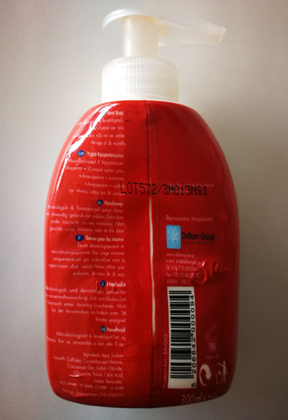 | Beschreibung: | Handseife für Kinder in einer 300-ml-Kunststoffflasche mit einem roten Streifen und einem weißen Kunststoffspender.Bilder von „Cars“ und „Disney“ auf dem oberen Teil der Flasche. |