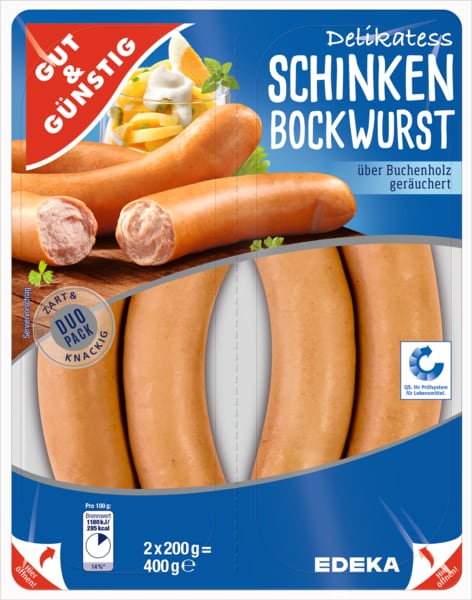 Die EDEKA-Zentrale informiert über den Rückruf des Artikels „Delikatess Schinken Bockwurst“ der Marke „GUT&GÜNSTIG“ in der 400g Packung. Wie das Unternehmen mitteilt, kann nicht ausgeschlossen werden, dass sich in einzelnen Verpackungen die Käse Schinkenbockwurst befindet. In diesem Fall sie die zusätzlich enthaltenen Allergene Milch bzw. Milchbestandteile nicht deklariert.