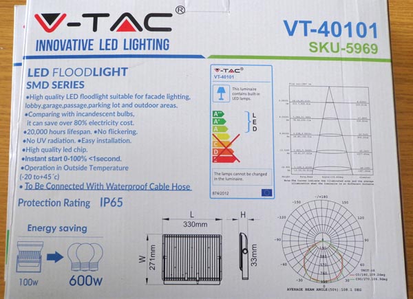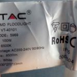 | Typ/Modellnummer: | VT-40101, SKU-5969, 100W, batch nr. 0000504 |