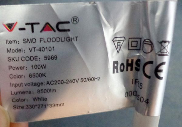 Rapex-Meldung: Stromschlaggefahr bei LED floodlight der Marke V-TAC