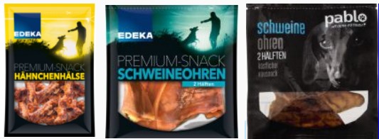 Die Firma Nutraferm Petfood GmbH informiert über den Rückruf verschiedener Natur-Kausnacks für Hunde. Von dem Rückruf betroffen sind die Artikel „EDEKA Hähnchenhälse“, „EDEKA Schweineohren“ und „pablo Schweineohren“. Die betroffenen Artikel „EDEKA Hähnchenhälse“ und „EDEKA Schweineohren wurden überwiegend bei Marktkauf und EDEKA angeboten. Der betroffene Artikel „Pablo Schweinohren“ wurde bei Netto Marken-Discount angeboten.