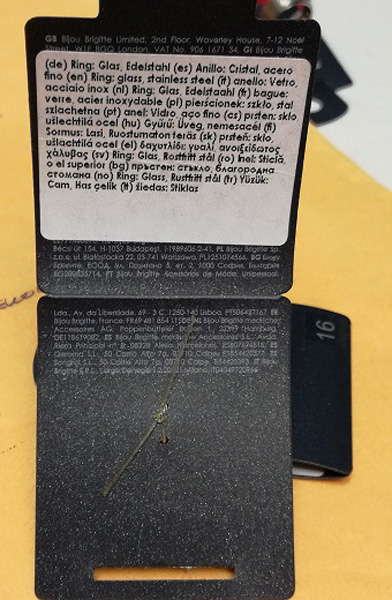 Rapex-Meldung: Erhöhte Nickelfreisetzung in Edelstahl Damenring von BIJOU BRIGITTE