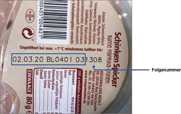 „Schinken Spicker Fleisch Bunte Paprika-Lyoner“ mit anderen Chargennummern und/oder anderem Mindesthaltbarkeitsdatum sind nicht betroffen. Auch alle anderen Schinken Spicker Sorten (vegetarisch, vegan und Bio) sowie alle anderen Produkte der Rügenwalder Mühle sind nicht betroffen.