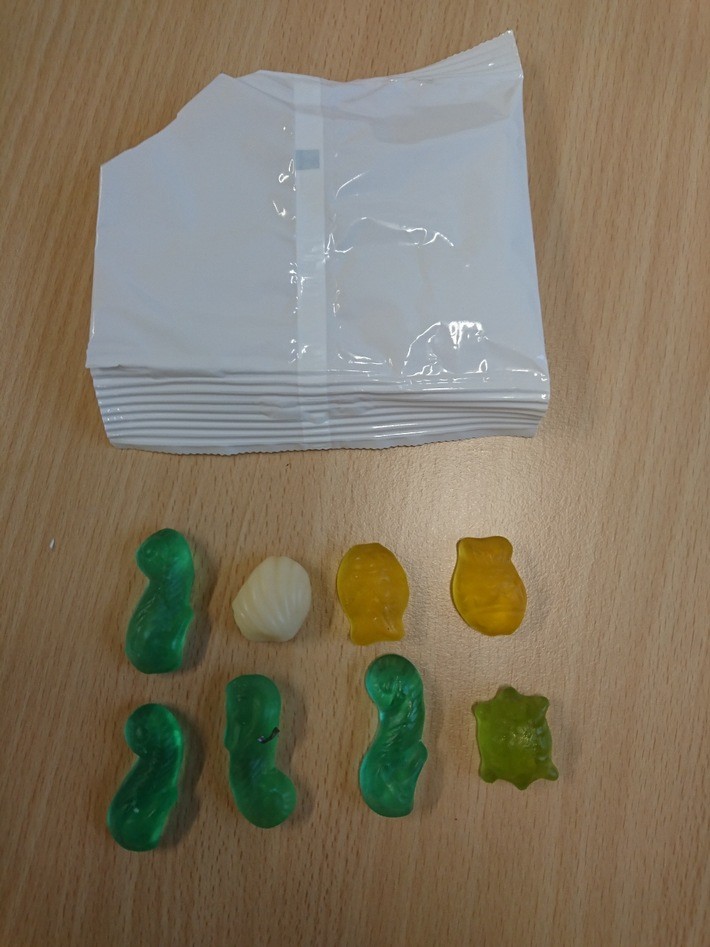 Die Fruchtgummis sollten auf keinen Fall verzehrt werden. Ein Bild einer solcher Packung, die am Dienstag nach dem Umzug bei der Polizei abgegeben wurde, ist beigefügt.