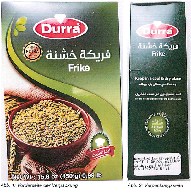 Die Orienta Foods GmbH informiert über den Rückruf des Artikels „Frike (unreifer Weizen)“ der Marke Durra. Wie das Unternehmen mitteilt, wurde festgestellt, dass die europäischen Grenzwerte von aliphatischen Kohlenwasserstoffen (MOSH) und aromatische Kohlenwasserstoffe (MOAH) überschritten wurden. Der Verzehr kann gesundheitsschädlich sein.