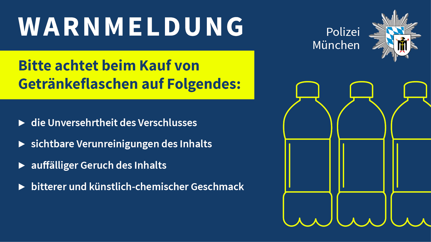 Bei einer entsprechend verdächtigen Flasche sollte die Substanz nicht entsorgt werden, sondern umgehend der Notruf der Polizei, die 110, verständigt werden.